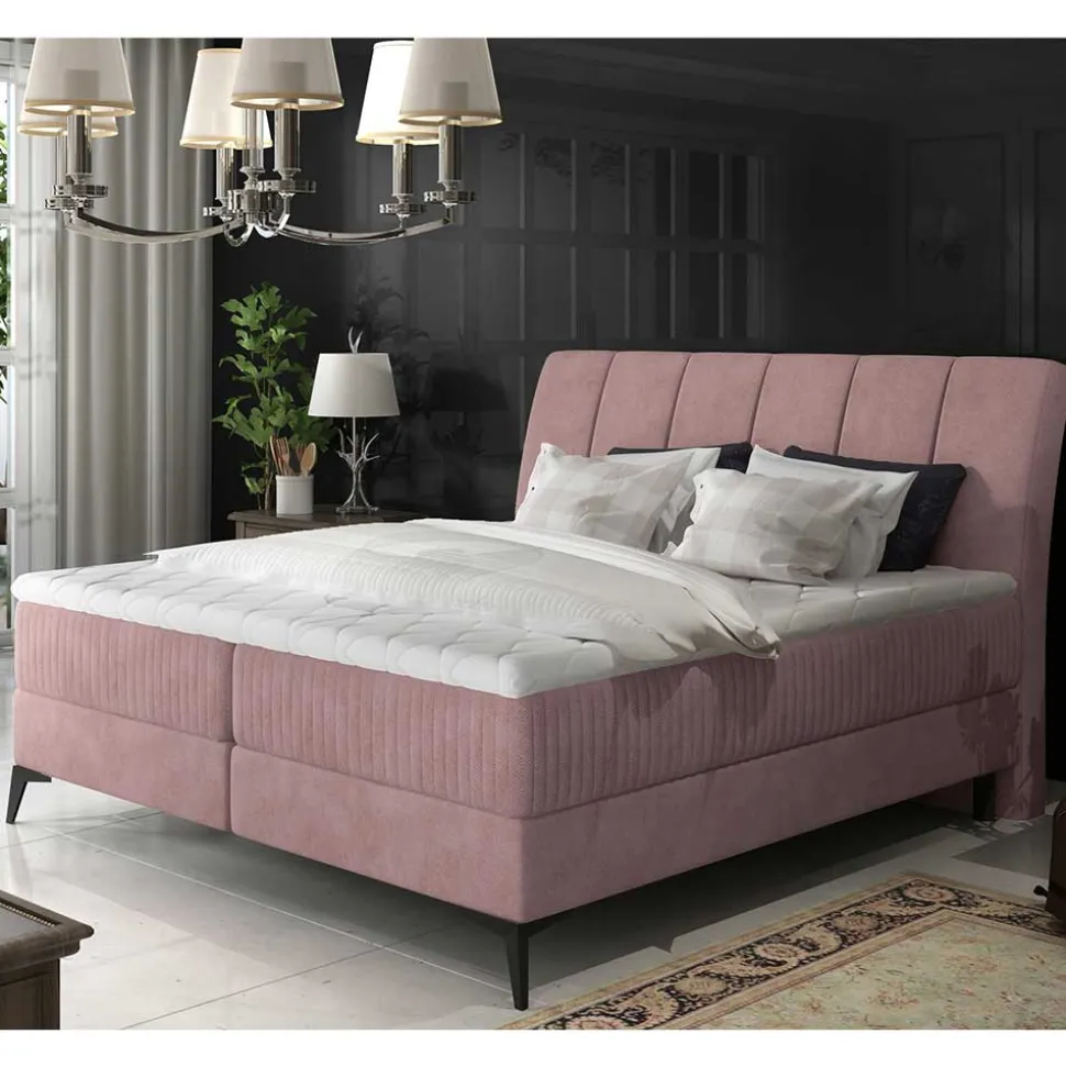 Mit seinem zarten Altrosa und dem edlen Samtbezug verleiht das Samt-Polsterbett „Apolonia“ Ihrem Schlafzimmer eine romantische und elegante Note. Dieses Möbelstück kombiniert ansprechendes Design mit durchdachter Funktionalität – perfekt für ein harmonisches Wohnambiente.