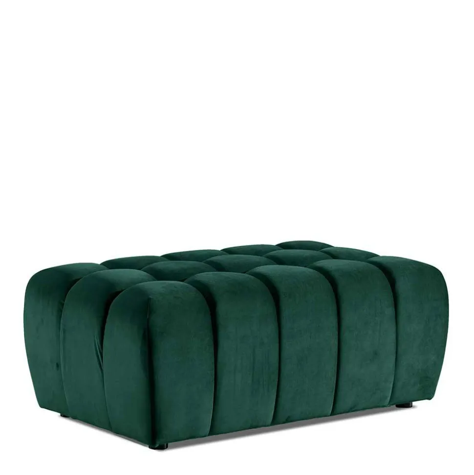 Der Bezug aus 100 % Polyester-Samt in einem satten Grün verleiht dem Hocker nicht nur eine luxuriöse Optik, sondern überzeugt auch haptisch auf ganzer Linie. Er fühlt sich weich und anschmiegsam an – fast wie ein sanftes Streicheln. Gleichzeitig ist der Stoff extrem strapazierfähig: Mit 100.000 Scheuertouren nach Martindale hält er auch intensiver Nutzung mühelos stand – perfekt für den Alltag mit Familie, Gästen oder Haustieren. Die tiefen Steppungen verleihen dem Hocker zusätzlich eine spannende Textur, die den edlen Look noch unterstreicht.
