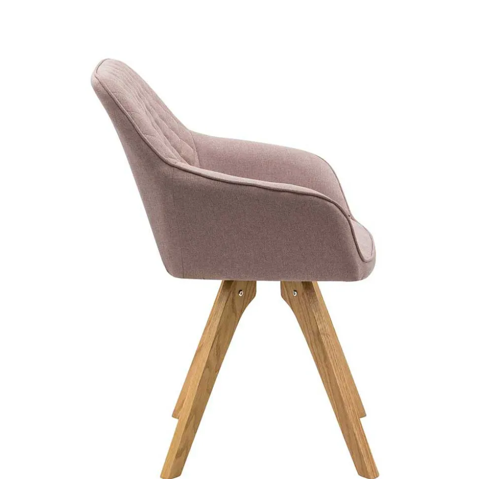 Die Stühle der Gruppe sind mit einem stilvollen Webstoff in Altrosa bezogen. Gefertigt aus 100 % Polyester, überzeugt dieses Material durch Strapazierfähigkeit, Pflegeleichtigkeit und Farbintensität. Gerade im Alltag punktet Polyester durch seine hohe Formbeständigkeit und einfache Reinigung – ein echtes Plus für Haushalte mit Kindern oder Haustieren.