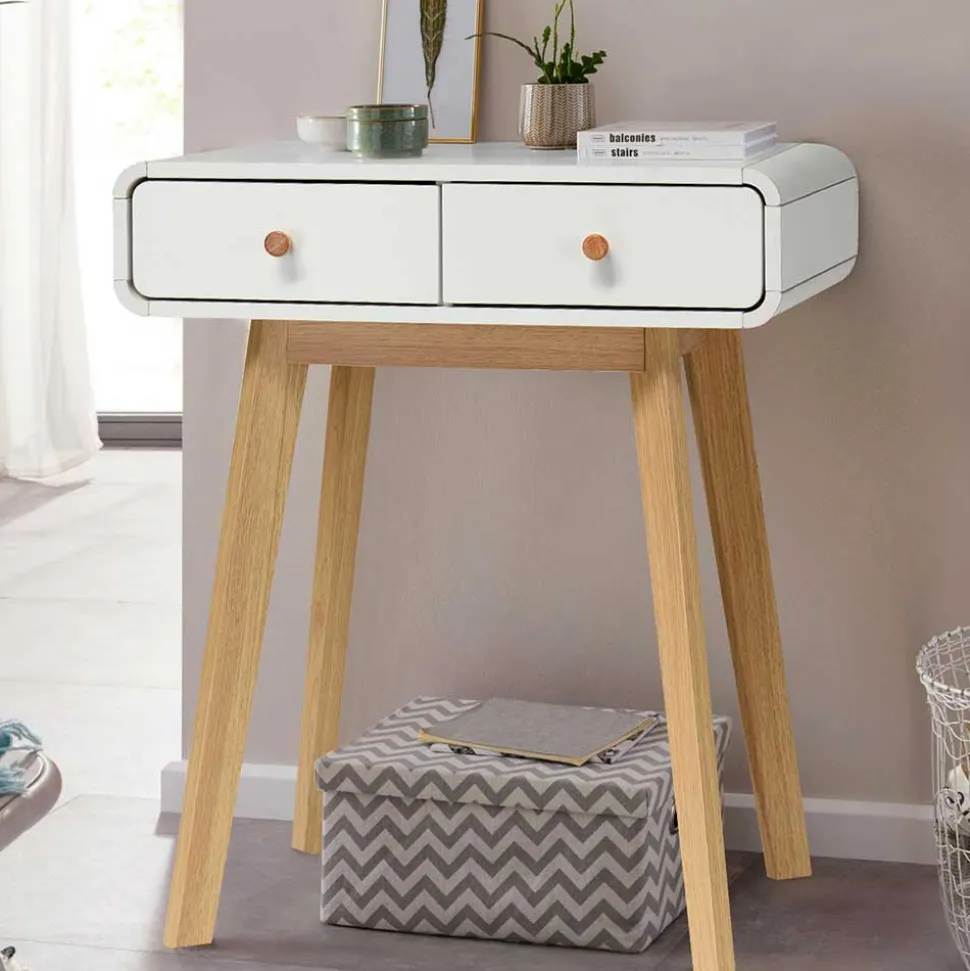 - Vielseitiger Konsolentisch in Weiß und Eichefarben