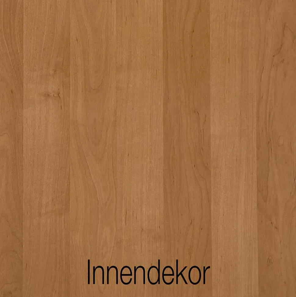 - Holzoberflächen lackiert, Spanplatte in Holzoptik Eiche Bianco foliert, mittlere Tür mit Glas beschichtet