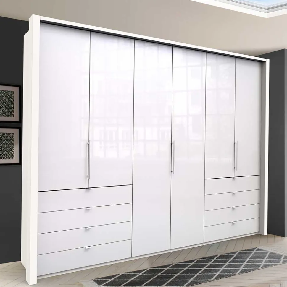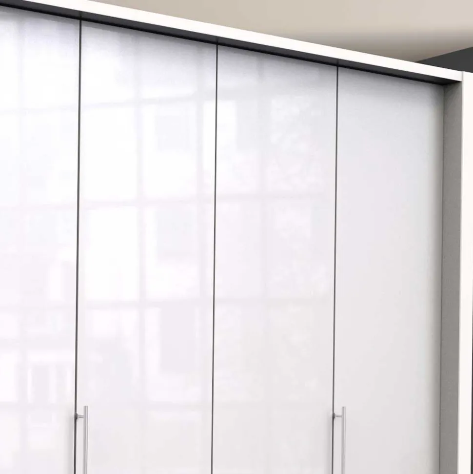 Entdecken Sie den Schlafzimmerschrank „Dolienca“ – ein Meisterwerk moderner Eleganz und deutscher Handwerkskunst! Hergestellt aus hochwertiger Spanplatte und mit einer weißen Glasbeschichtung auf der Front und einem weißen folierten Korpus, verkörpert dieser Schrank ein modernes, zeitloses Design, das sich harmonisch in jeden Wohnraum einfügt.