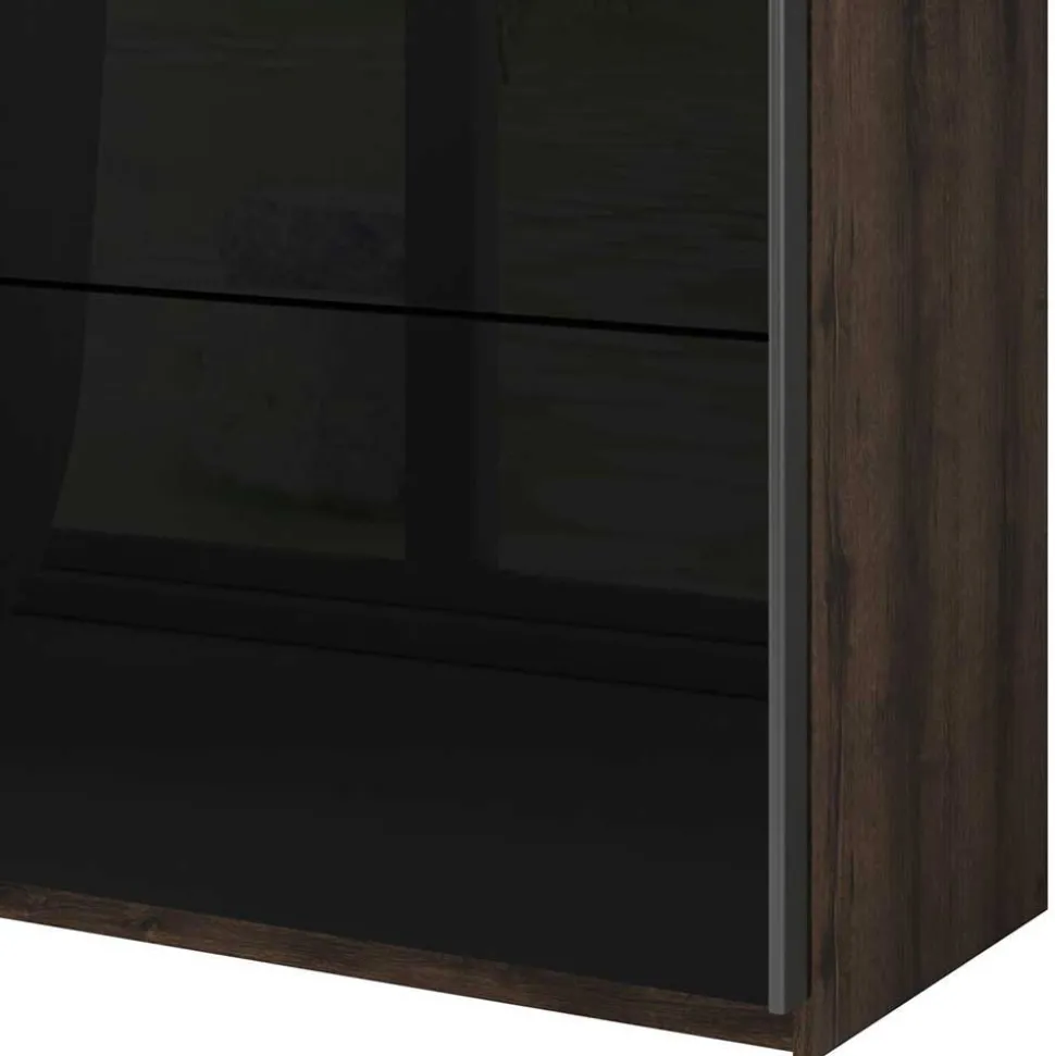 - Oberflächen in Holzoptik Wildeiche dunkel foliert, Schrank teils mit Glas beschichtet