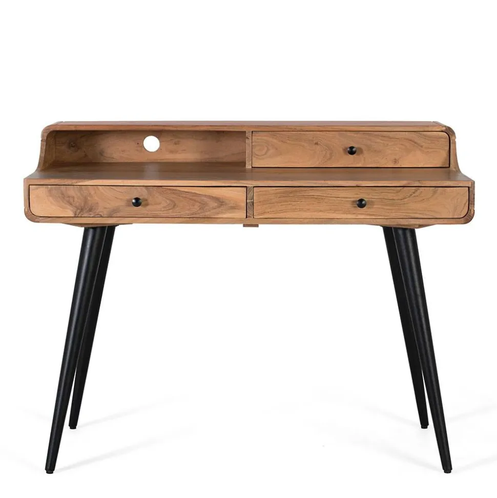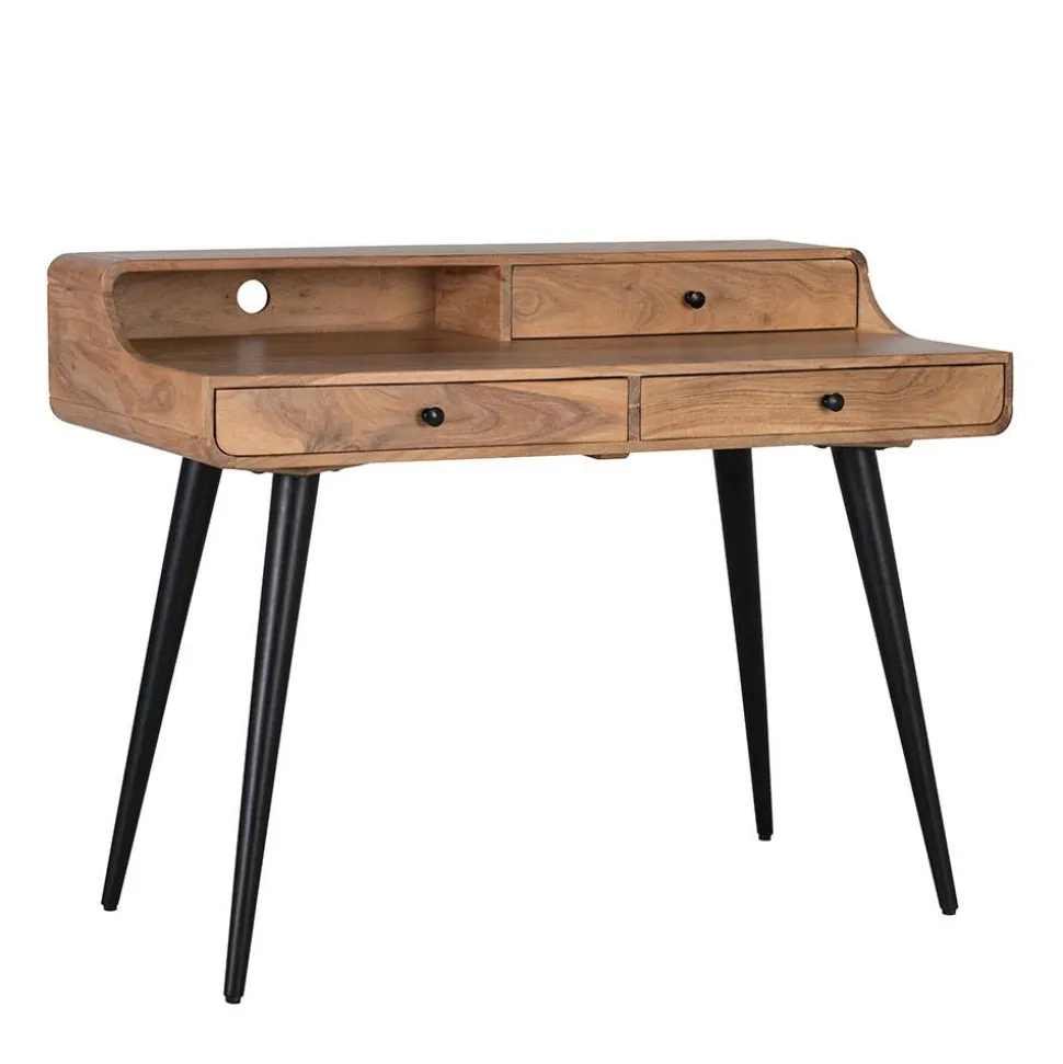- Praktischer Schreibtisch in Akaziefarben und Schwarz