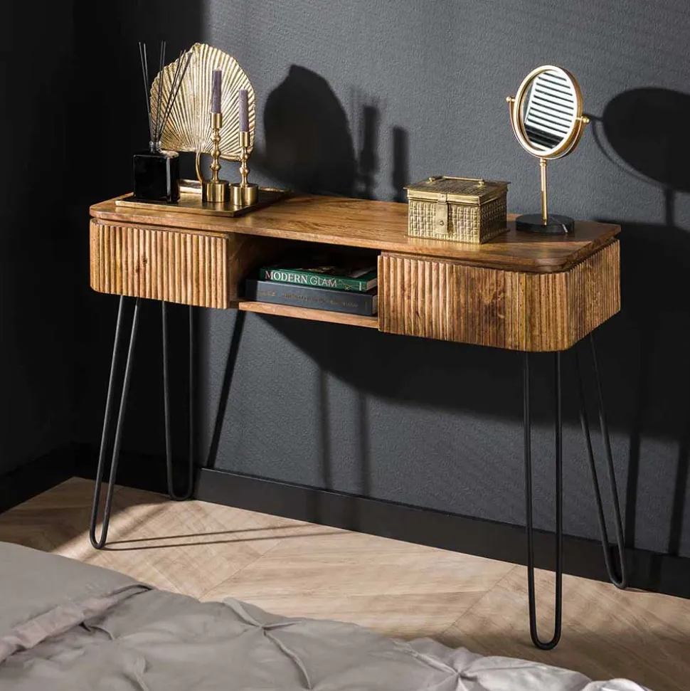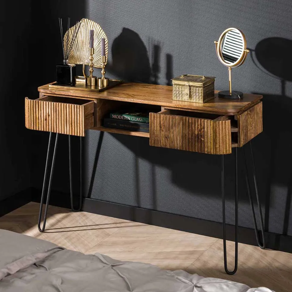 - Dekorativer Schreibtisch in Mangoholz Sand und Schwarz
