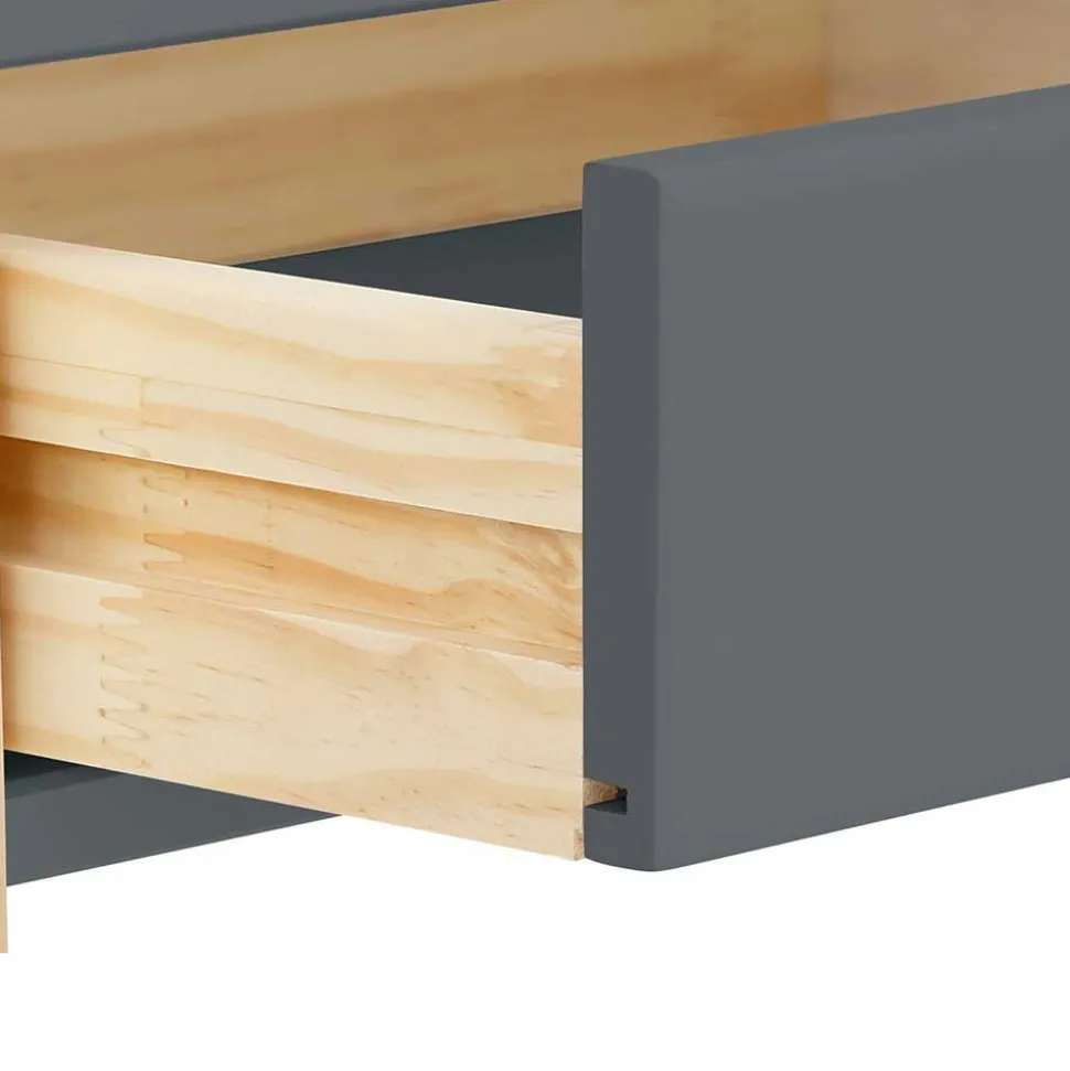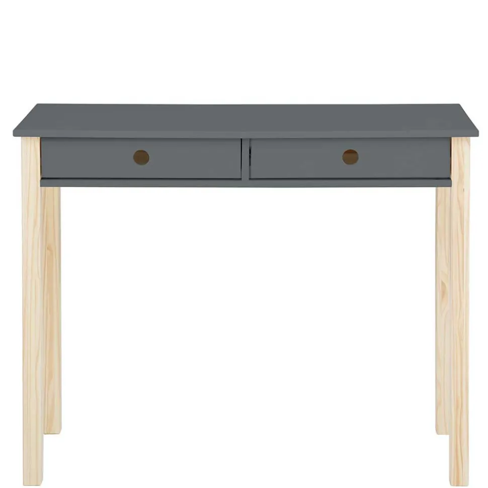 Mit dem Schreibtisch „Bradley“ schaffen Sie eine moderne Arbeitsfläche für Kinder und Jugendliche. Die Tischplatte in mattgrauer Ausführung aus hochwertiger MDF-Platte fügt sich perfekt in zeitgemäße Einrichtungskonzepte ein und strahlt eine ruhige, klare Eleganz aus. Die Kombination mit dem Kiefernholzgestell in Naturfarbton macht den Schreibtisch nicht nur optisch attraktiv, sondern auch stabil und langlebig.