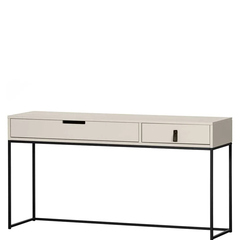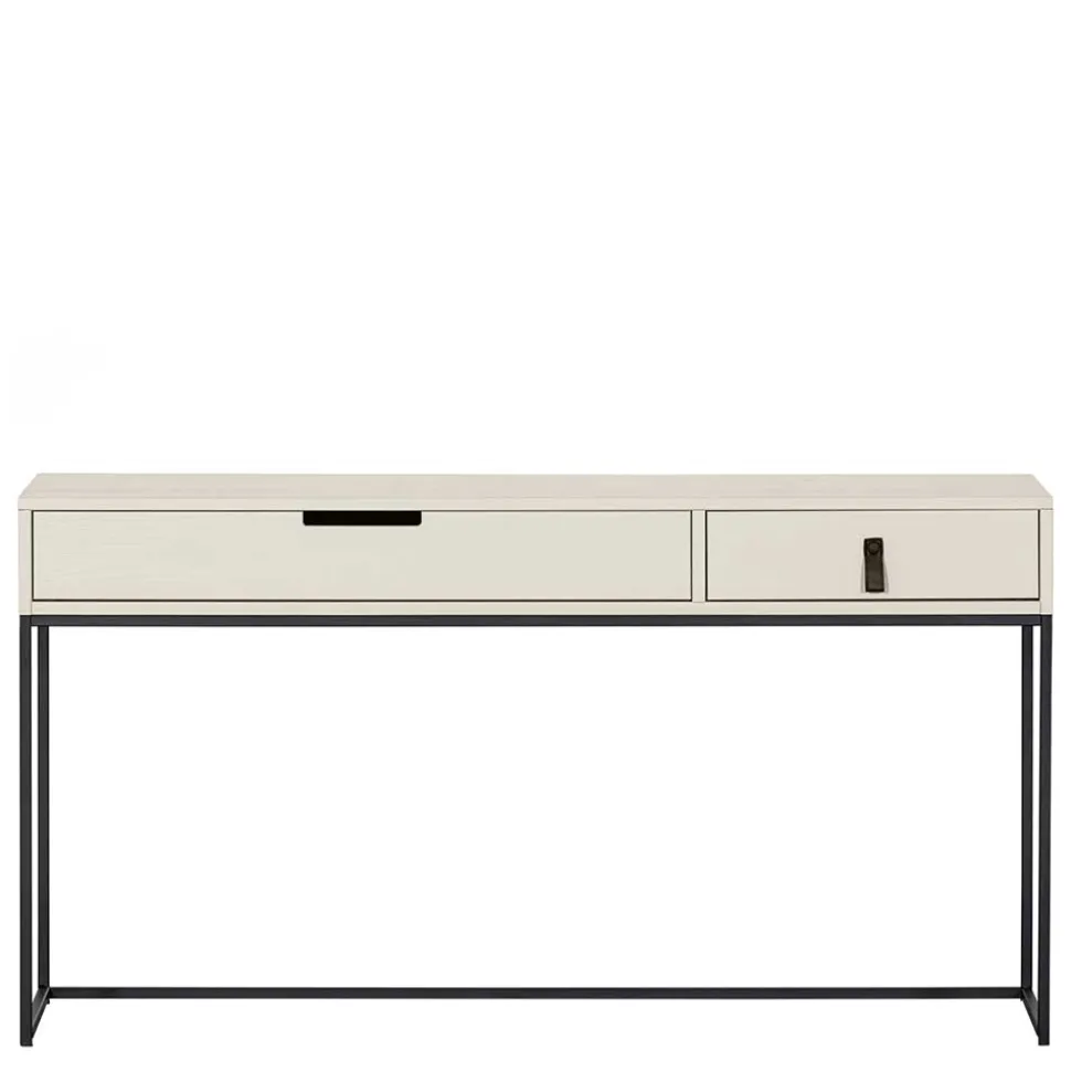 Mit einer Breite von 140 cm, einer Höhe von 74 cm und einer Tiefe von 40 cm bietet der Schreibtisch ausreichend Platz für Laptop, Notizbuch und weiteres Arbeitszubehör, ohne dabei zu viel Raum einzunehmen. Das minimalistische Bügelgestell aus Metall sorgt für Stabilität, verleiht dem Schreibtisch aber gleichzeitig eine leichte, luftige Optik. Mit einem Gewicht von nur 15 kg lässt sich der Tisch außerdem problemlos umstellen und flexibel in verschiedene Wohnkonzepte integrieren.