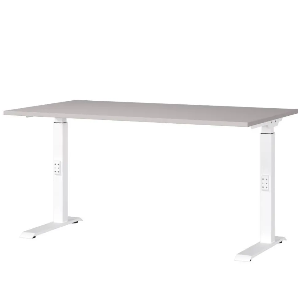- Zeitloser Schreibtisch in Hellgrau und Weiß