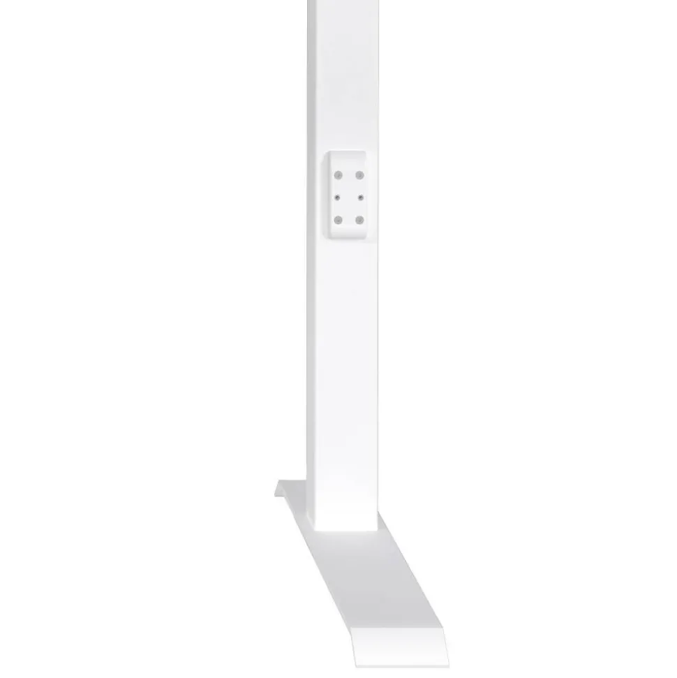 - Weiß pulverbeschichtetes Gestell in T-Form mit nivellierbaren Kunststoff Bodengleitern