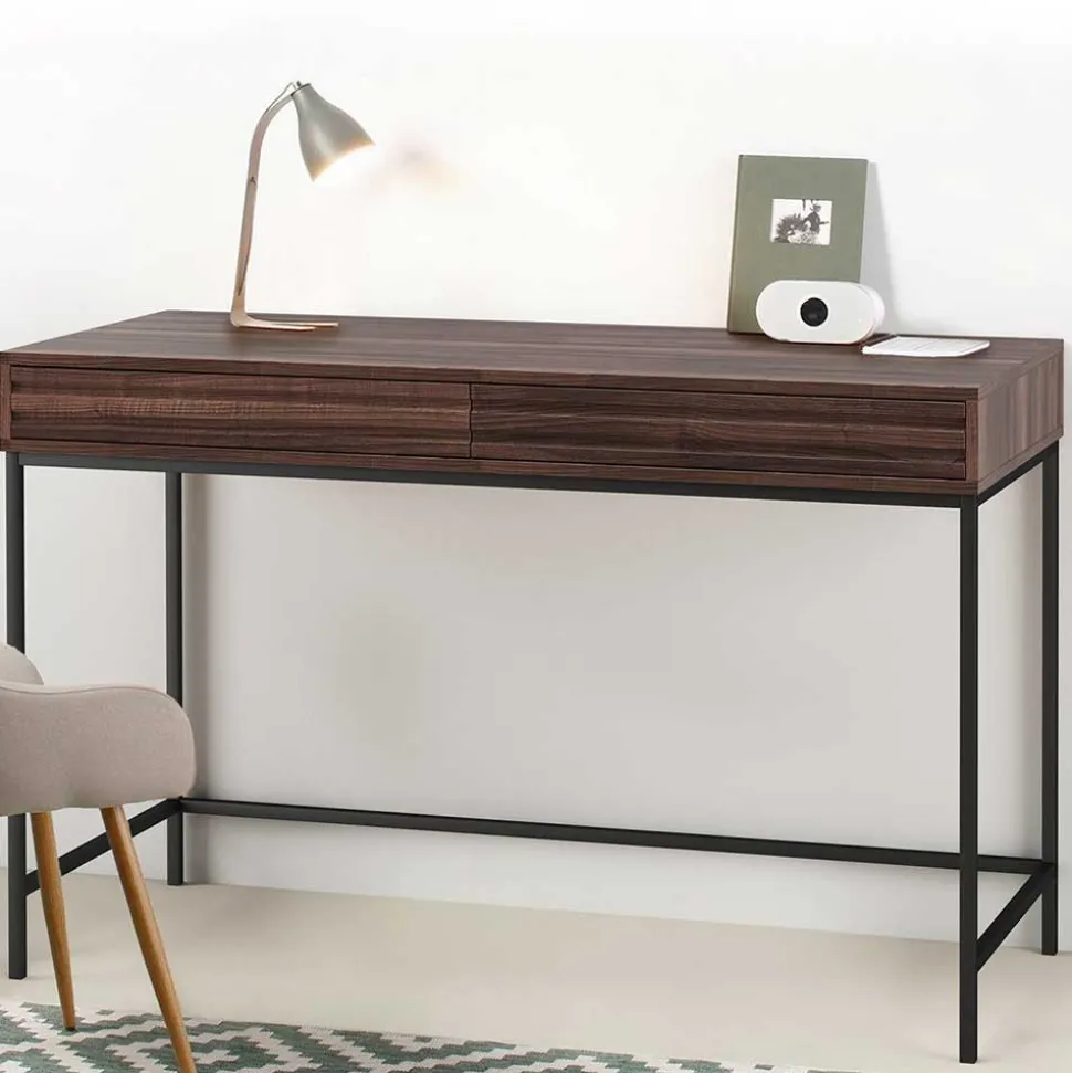 - Schicker Schreibtisch in Walnussfarben und Schwarz