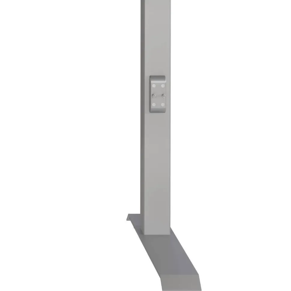 - Silberfarbig pulverbeschichtetes Gestell in T-Form mit nivellierbaren Kunststoff Bodengleitern