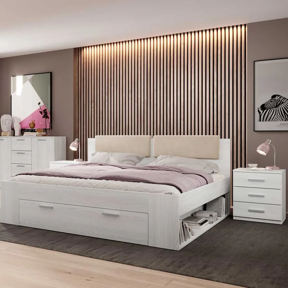 - Optimales Doppelbett in Esche weiß