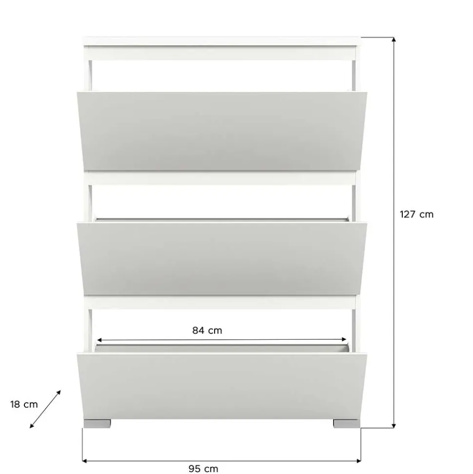 - Drei Schuhklappen bieten Platz für bis zu 9 Paar Schuhe
