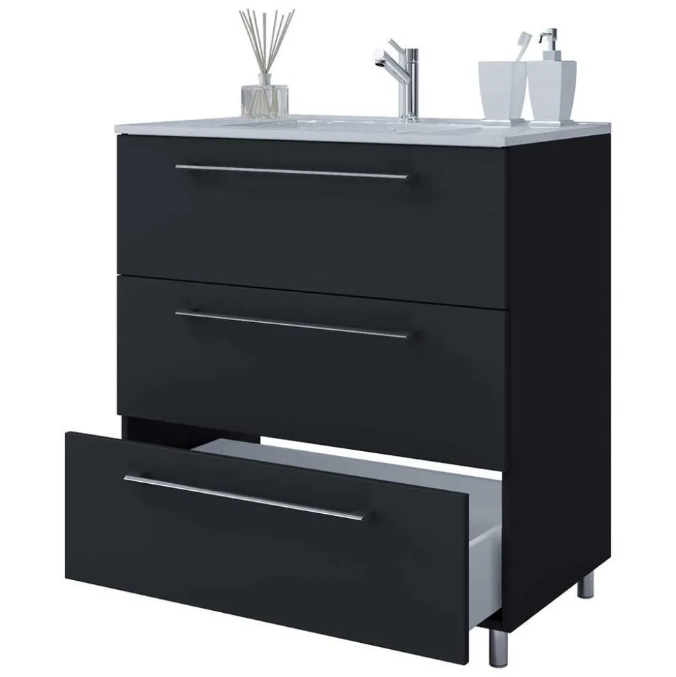 - Drei geräumige Schubkästen mit leichtlaufendem Metallauszug
