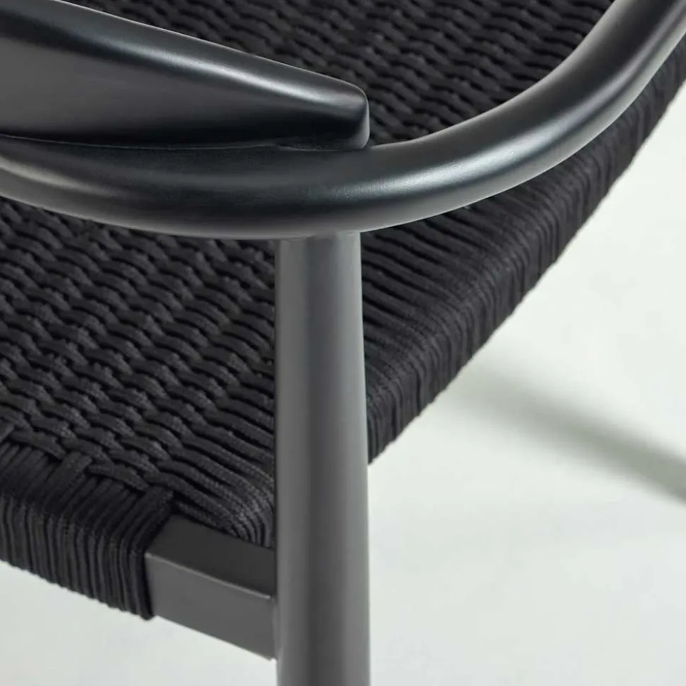 Schwarze Stühle aus Akazie & Kordel – Varioma (4er Set)