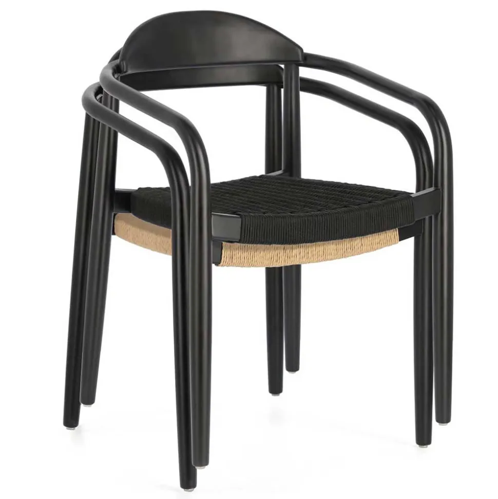 Schwarze Stühle aus Akazie & Kordel - Varioma (4er Set)
