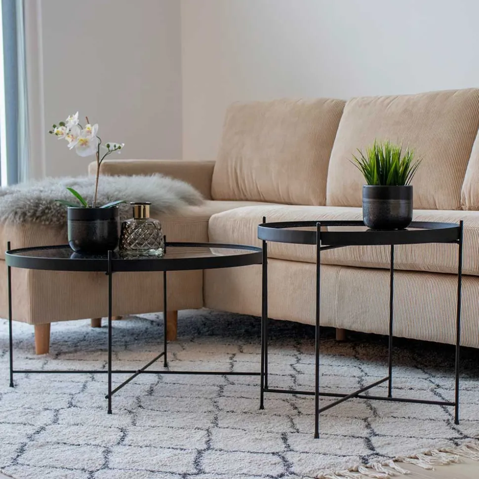 Die Tischplatte aus dunklem, spiegelndem Glas fängt das Licht auf faszinierende Weise ein und verleiht dem Raum Tiefe und Charakter. Ihre Finger gleiten über die glatte, kühle Oberfläche, eingerahmt von einem robusten Metallrand, der die filigrane Ästhetik unterstreicht und gleichzeitig für Stabilität sorgt. Jedes Detail wurde mit Blick auf Langlebigkeit und Stil entworfen – die pulverbeschichteten Metalloberflächen in elegantem Schwarz fühlen sich ebenso hochwertig an, wie sie aussehen. Und durch ihre Pflegeleichtigkeit bleibt der edle Look dauerhaft erhalten – für ein Ambiente, das stets wie frisch eingerichtet wirkt.