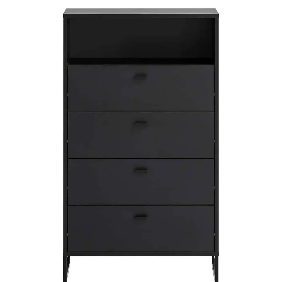 - Vier Schubladen mit Teilauszug, oben ein offenes Fach