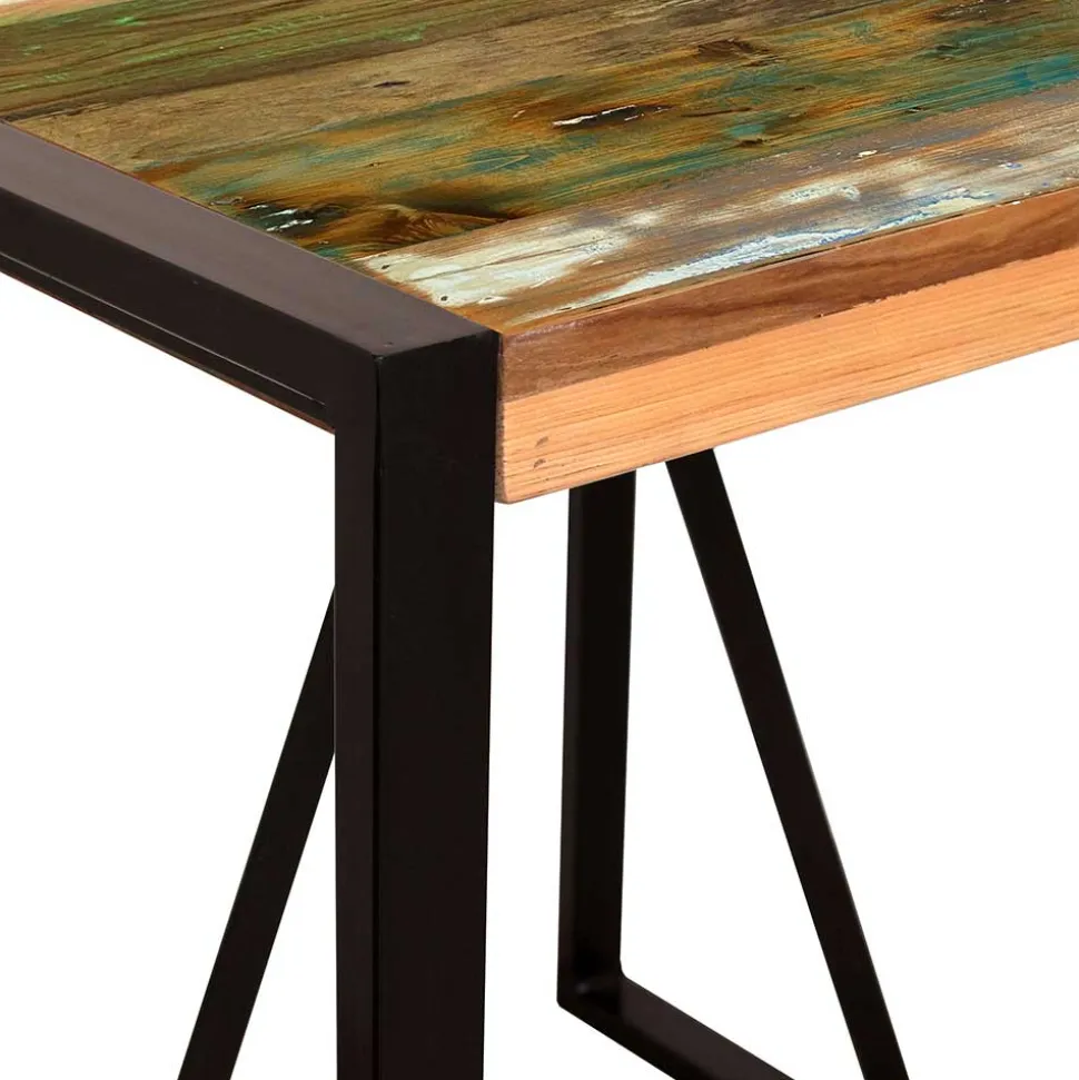 Der „Vosbadus“ Esstisch wurde aus hochwertigem Recyclingholz und robustem Altmetall hergestellt. Recyclingholz ist Holz, das aus alten Gebäuden oder Möbeln gewonnen wurde und somit eine besonders nachhaltige Ressource darstellt. Es trägt nicht nur zur Schonung der Umwelt bei, sondern verleiht dem Tisch auch seinen einzigartigen Charakter. Altmetall verleiht dem Tischgestell seine industrielle, robuste Optik und sorgt gleichzeitig für extreme Langlebigkeit.
