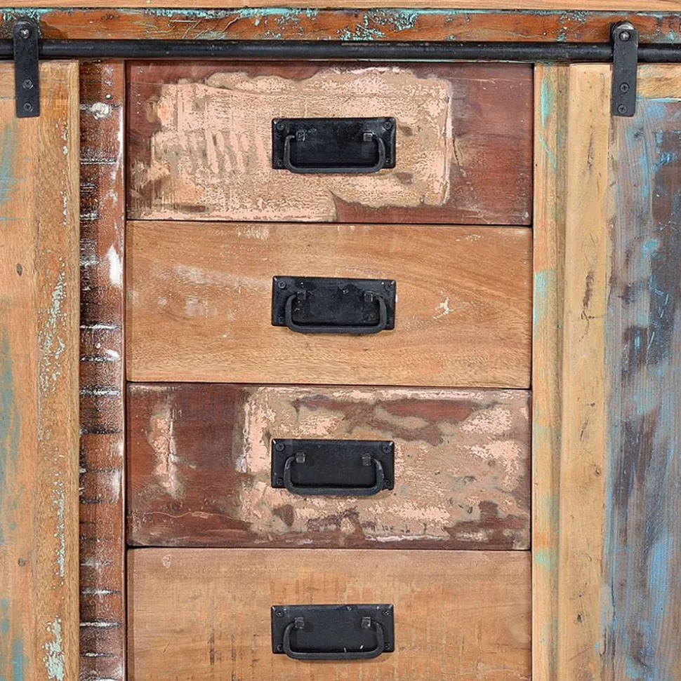 Gefertigt aus massivem Recyclingholz, das von alten Booten und Möbelstücken stammt, überzeugt diese Kommode nicht nur optisch, sondern auch in puncto Nachhaltigkeit. Altes Holz wird hier in aufwendiger Handarbeit zu neuem Leben erweckt, wodurch jede Maserung, jede Farbnuance und jede Struktur einzigartig ist. Recyclingholz ist besonders widerstandsfähig und langlebig, da es bereits über Jahrzehnte abgelagert wurde. So erhalten Sie ein hochwertiges Möbelstück, das sowohl umweltbewusst als auch stabil ist – eine Investition, die sich lohnt.