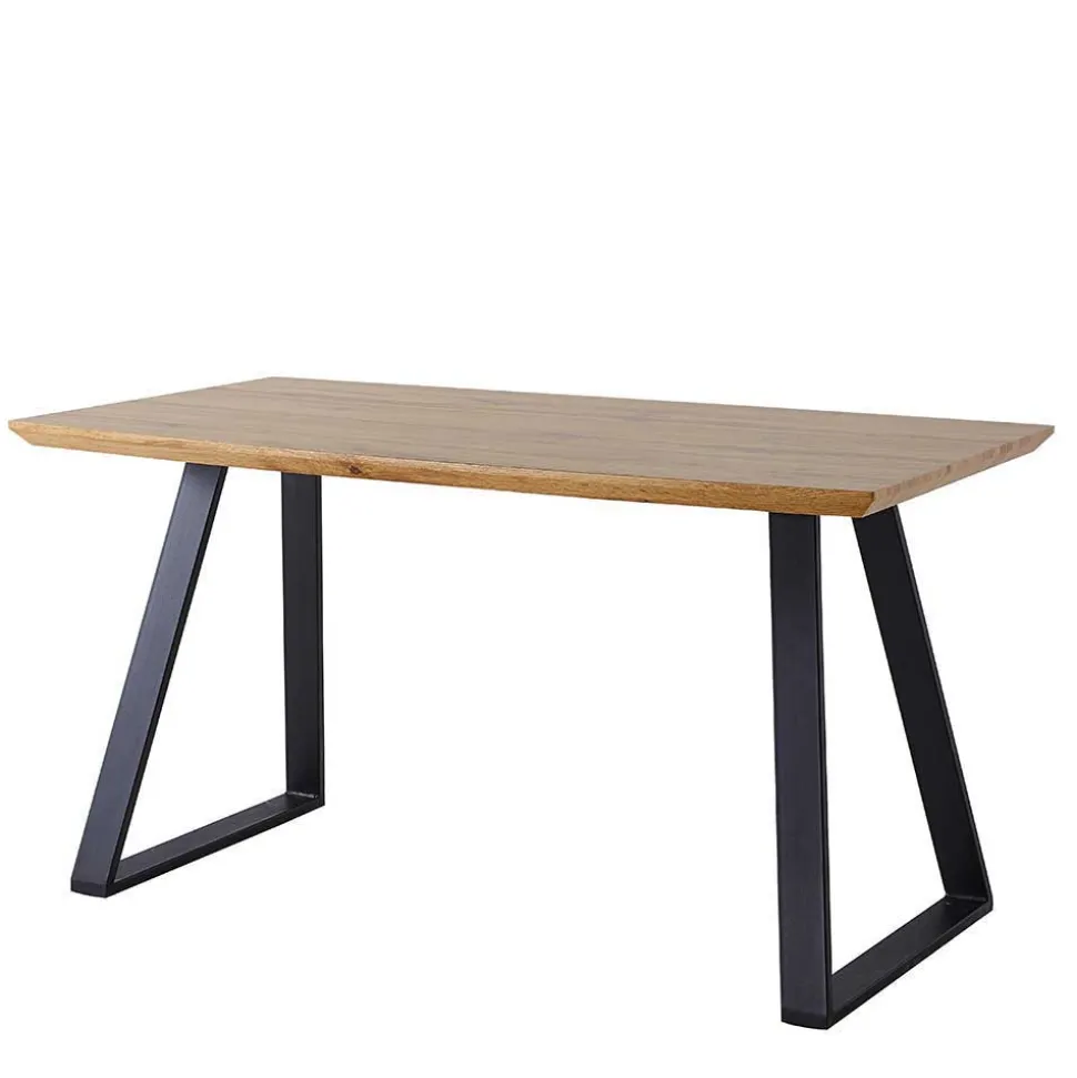 Nicht nur die Größe und Stabilität des Tisches überzeugen – auch das Design der Tischplatte wurde mit Liebe zum Detail gestaltet. Eine sogenannte Schweizer Kante sorgt dafür, dass die Tischplatte optisch besonders filigran wirkt. Diese abgeschrägte Kante verleiht dem Tisch eine elegante Leichtigkeit und unterstreicht den modernen Skandi-Charakter. Getragen wird die Platte von einem robusten Bügelgestell aus Metall, das dem Tisch nicht nur hohe Standfestigkeit verleiht, sondern auch eine schwebende Optik erzeugt.