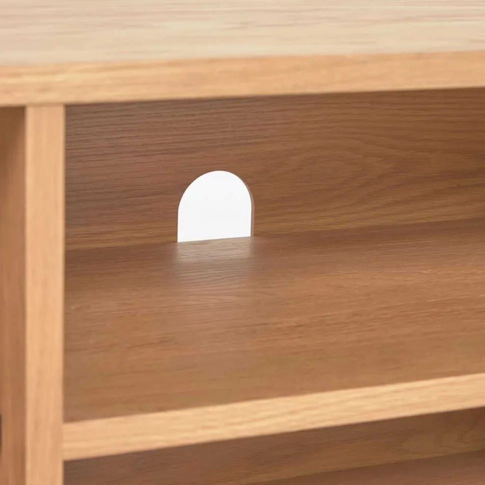 Mit seinen beeindruckenden Maßen von 180 cm Breite, 50 cm Höhe und 43 cm Tiefe bietet das TV-Lowboard „Azuro“ reichlich Stauraum für alle Ihre Mediengeräte und Zubehör. Die Deckplatte ist bis zu 60 kg belastbar, ideal für Ihren Fernseher und dekorative Elemente. Seitlich befinden sich zwei Klappen mit eleganten Holzstrebenfronten, die sich dank Gasdruckdämpfern sanft nach unten öffnen lassen. Die Innenmaße der Fächer bieten ausreichend Platz für alles, was Sie verstauen möchten. Zudem sorgen die mittig platzierten offenen Gerätefächer und die Löcher zur Kabelführung in der Rückwand für eine ordentliche und praktische Unterbringung Ihrer Geräte.