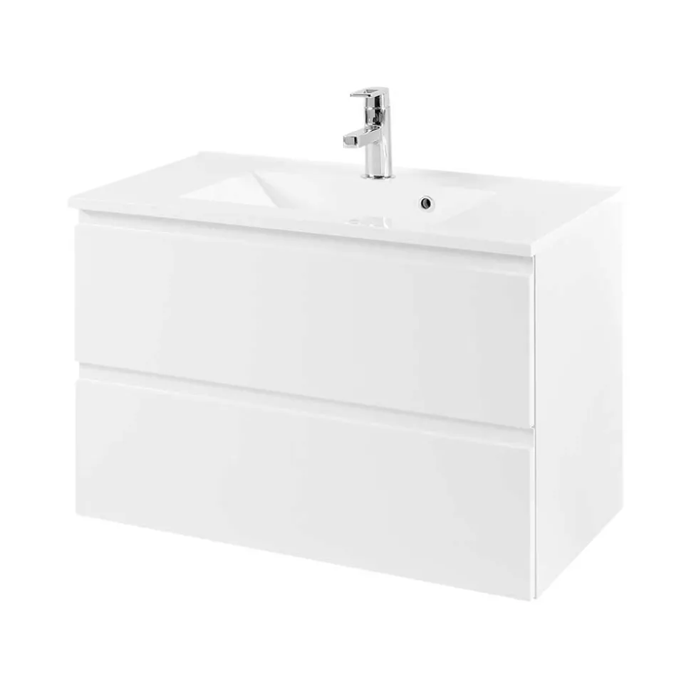 - Cleanes Waschtisch Set in Hochglanz Weiß