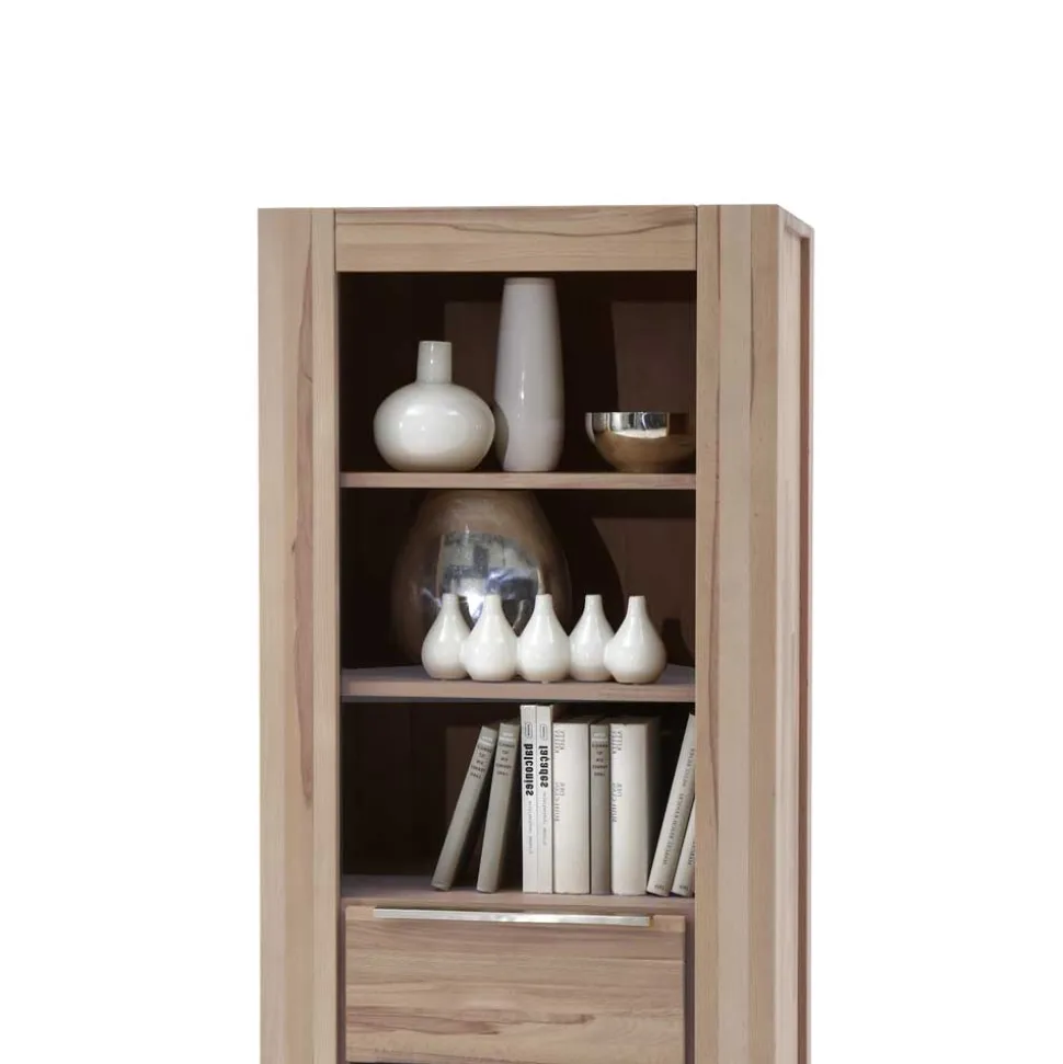 Funktionalität trifft auf Design – mit großzügigem Stauraum in durchdachter Aufteilung. Drei offene Fächer bieten Platz für Bücher, dekorative Elemente oder Alltagsgegenstände, die griffbereit sein sollen. Die beiden massiven Holzböden sorgen für eine stabile Einteilung und lassen sich vielseitig nutzen. Ergänzt wird die praktische Aufbewahrung durch zwei geräumige Schubkästen auf hochwertigen Metallschienen. Diese lassen sich sanft und mühelos ausziehen und bieten viel Platz für Unterlagen, Wohnaccessoires oder persönliche Gegenstände.