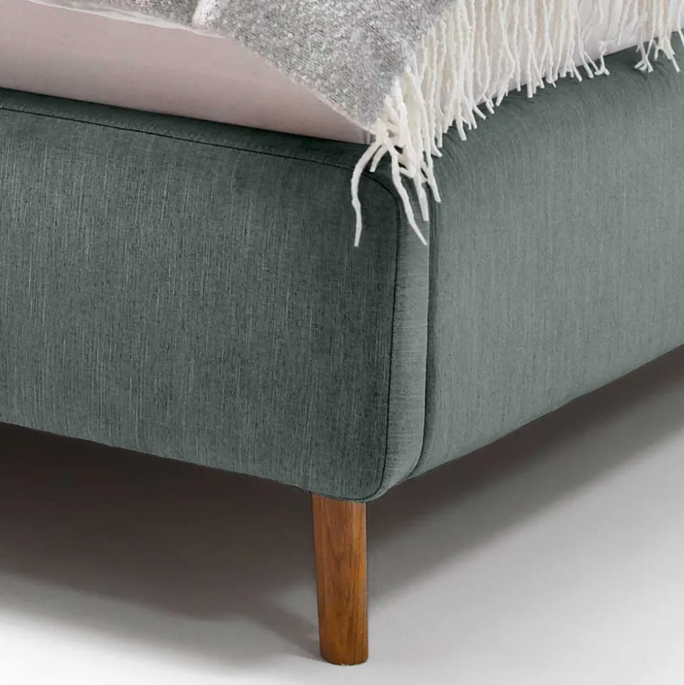 Das Polsterbett „Armele“ ruht auf einem standsicheren Vierfußgestell aus geöltem Eichen-Massivholz. Die Eiche zeichnet sich nicht nur durch ihre Stabilität aus, sondern auch durch ihre natürliche Schönheit und Widerstandsfähigkeit gegenüber Abnutzung.