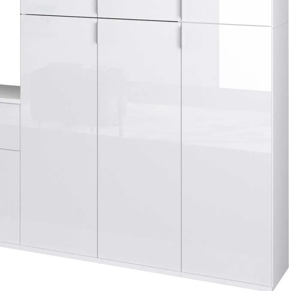 Modernes Design steht für klare Linien, minimalistische Formen und eine zeitlose Eleganz, die perfekt in jedes Zuhause passt. Die Garderobenmöbel „Ejulia“ vereinen genau diese Eigenschaften mit einer beeindruckenden Funktionalität. Die Kombination aus hochglänzendem Weiß und den dezenten, chromfarbenen Metall-Kantengriffen sorgt für eine moderne Optik, die in jedem Eingangsbereich einen stilvollen Akzent setzt.