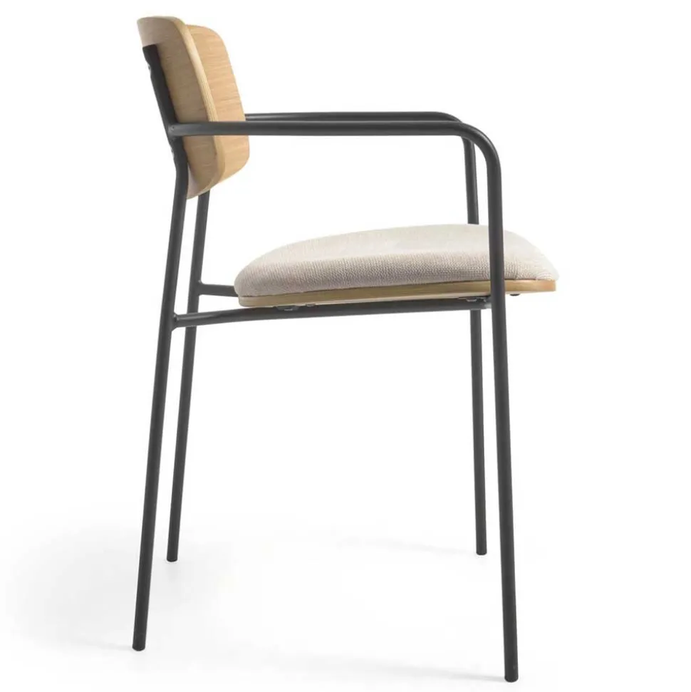 Eleganz, die in jedem Detail sichtbar wird – das bietet der Stuhl „Salute“. Mit seinem eleganten, dennoch minimalistischen Design, verkörpert er eine Symbiose aus zeitlosem Stil und moderner Funktionalität. Die leicht nach außen geneigten Armlehnen aus Metall und das matt schwarz pulverbeschichtete Vierfußgestell sorgen nicht nur für eine ansprechende Optik, sondern auch für Stabilität und Langlebigkeit. Das Gestell ist zudem mit Bodenschonern ausgestattet, die Ihren Fußboden vor Kratzern schützen.