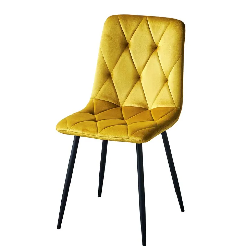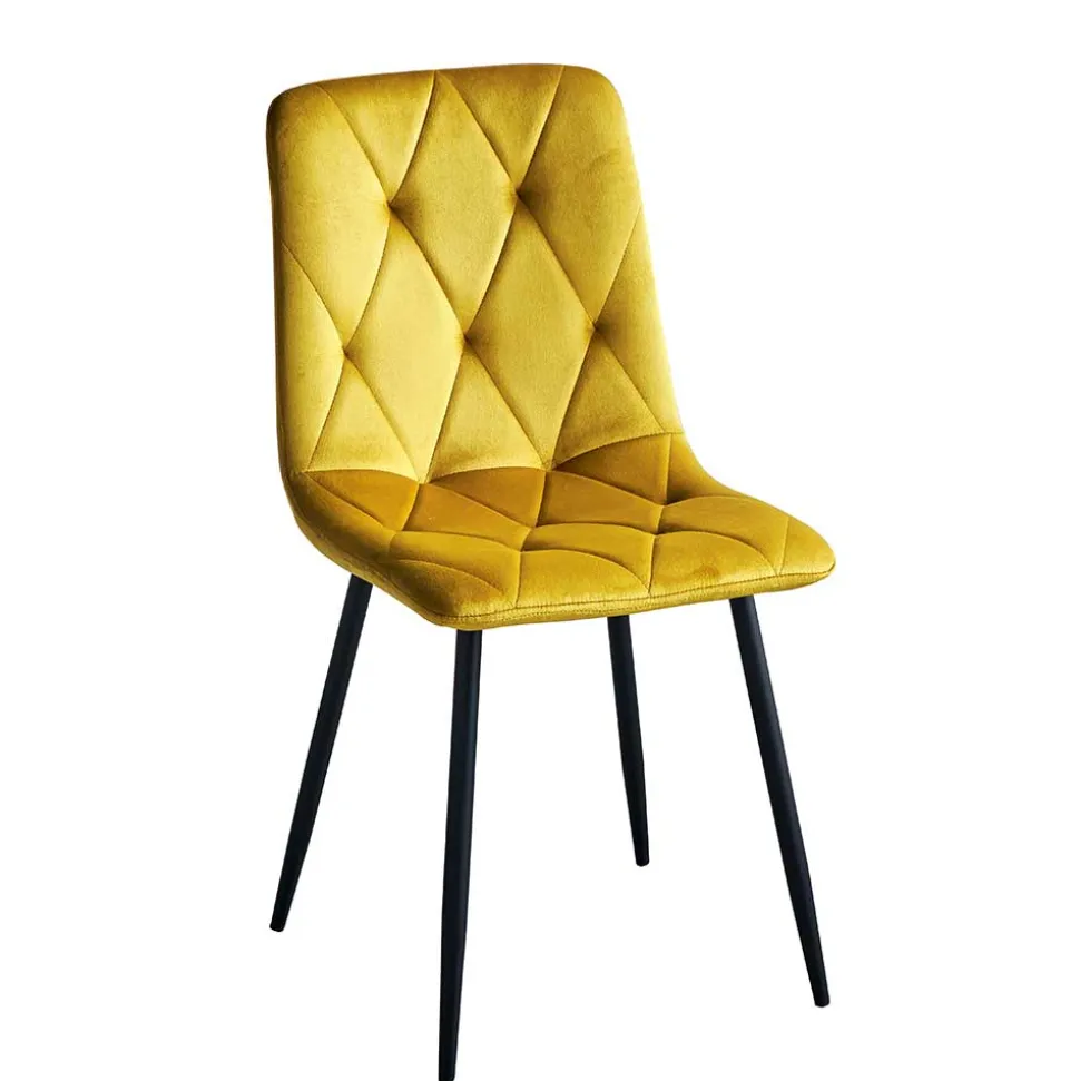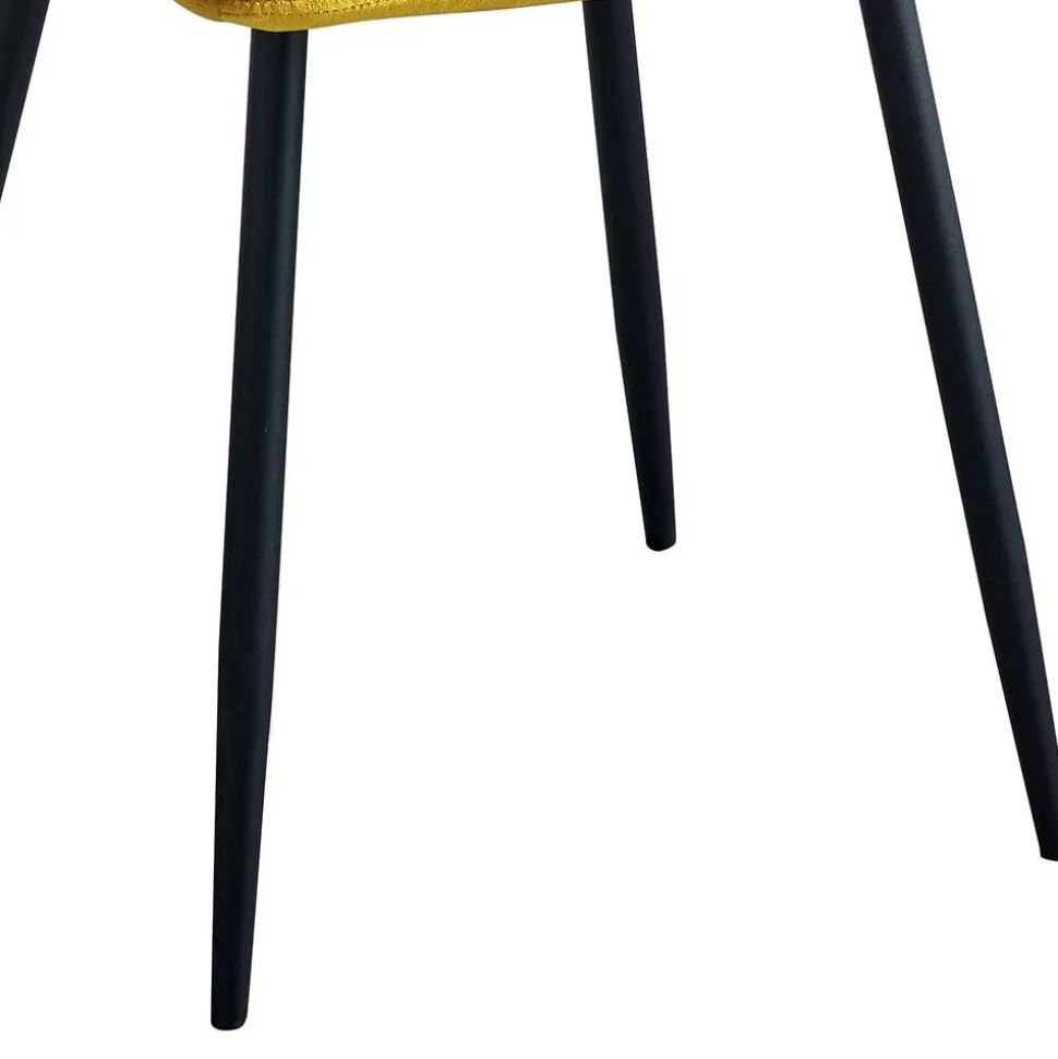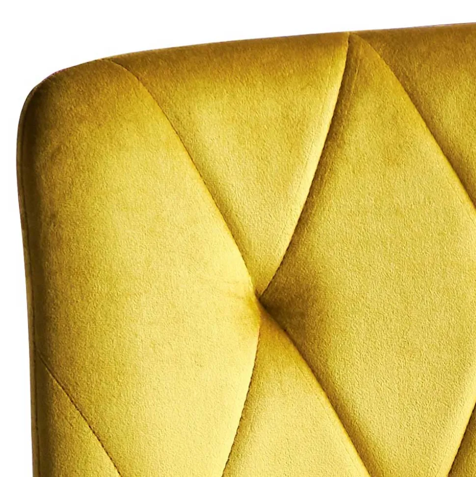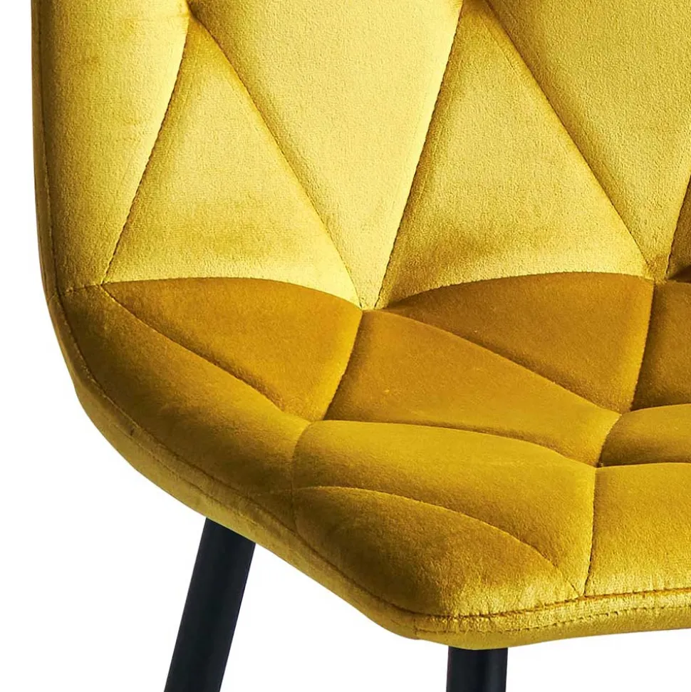 Der Bezug aus hochwertigem Samt (100 % Polyester) verleiht dem Polsterstuhl einen edlen Look und eine samtweiche Haptik. Samt reflektiert das Licht auf besonders schöne Weise, was dem Gelbton eine lebendige Tiefe und einen warmen Glanz verleiht. Darüber hinaus ist der Stoff überraschend pflegeleicht und langlebig – ideal für Haushalte, die Design und Alltagstauglichkeit miteinander verbinden möchten.
