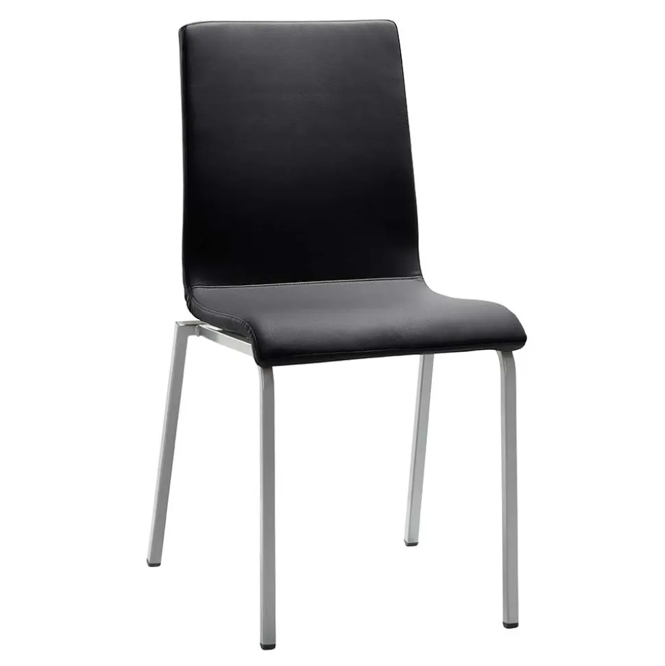 Das Vierkantrohr-Gestell aus perlsilberfarbig pulverbeschichtetem Stahl ist nicht nur optisch ansprechend, sondern auch extrem stabil. Es ist mit Bodenschonern ausgestattet, die Ihre Böden vor Kratzern schützen. Mit einer maximalen Belastbarkeit von 120 kg ist dieser Stuhl besonders langlebig und widerstandsfähig.