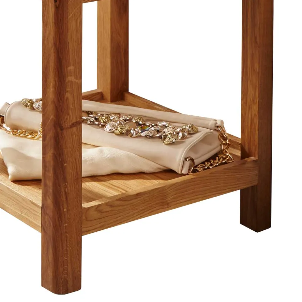 Gefertigt aus massivem Wildeichenholz überzeugt die Telefonkonsole „Uvinessa“ mit robuster Stabilität und natürlicher Schönheit. Das Wildeichenholz zeigt eine individuelle Maserung, die jedes Stück zu einem Unikat macht. Die geölte Oberfläche schützt das Holz nicht nur, sondern betont seine warme, wildeichefarbene Optik und sorgt für eine angenehme Haptik. Geölte Möbel sind pflegeleicht und bewahren ihre natürliche Ausstrahlung über Jahre hinweg.