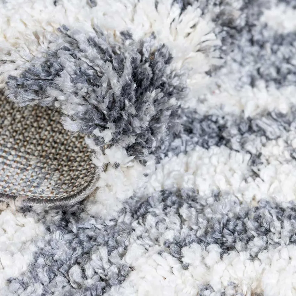 - Weicher Hochflor Teppich in Grau und Cremeweiß