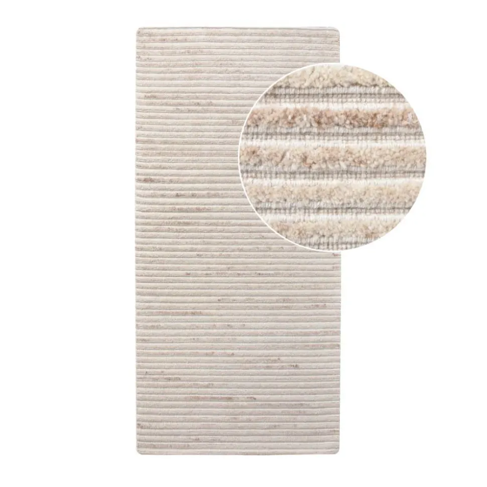 Der handgetuftete Teppich „Accapulco“ bringt nordische Leichtigkeit und zeitloses Design in jeden Raum. In sanftem Cremeweiß gehalten, fügt er sich harmonisch in unterschiedliche Einrichtungsstile ein und schafft eine helle, freundliche Atmosphäre. Das dezente Streifenmuster entsteht durch die Hoch-Tief-Struktur und verleiht dem Teppich eine elegante, lebendige Optik.