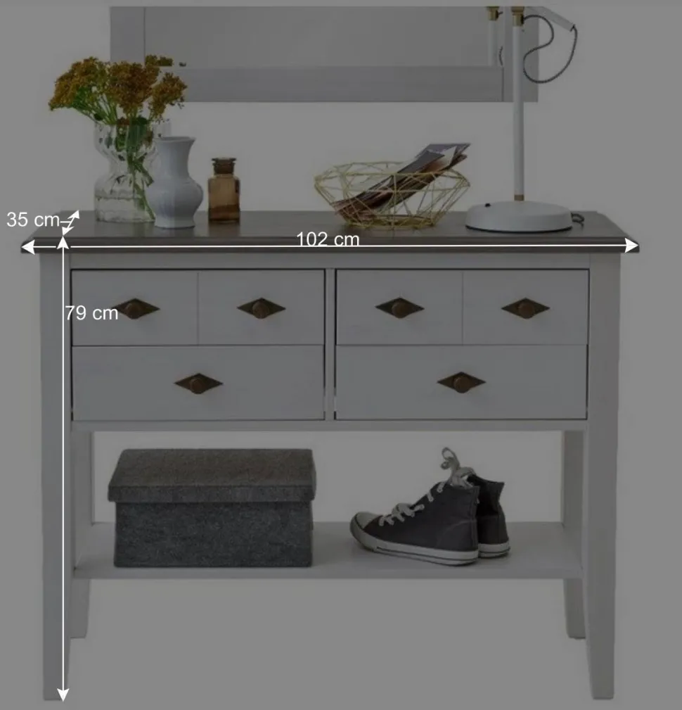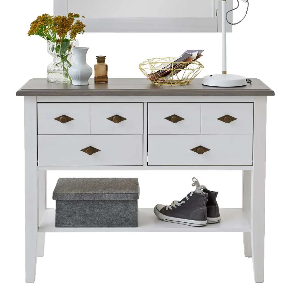 Erleben Sie den Charme und die Qualität des Konsolentischs „Mirandesca“ und bereichern Sie Ihr Zuhause mit einem Stück Eleganz im Landhausstil.