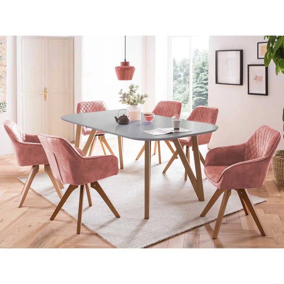 - Geschmackvolle Esszimmergruppe in Rosa, Grau und Eichefarben
