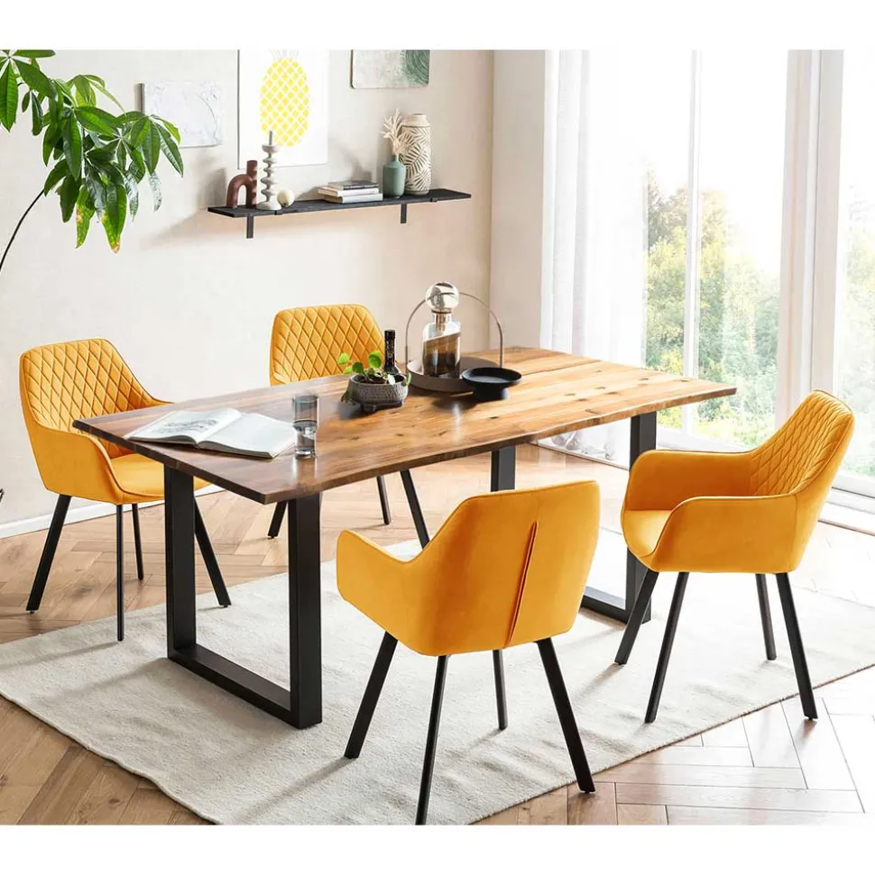 - Trendstarke Essgruppe in Gelb, Cognacfarben und Schwarz