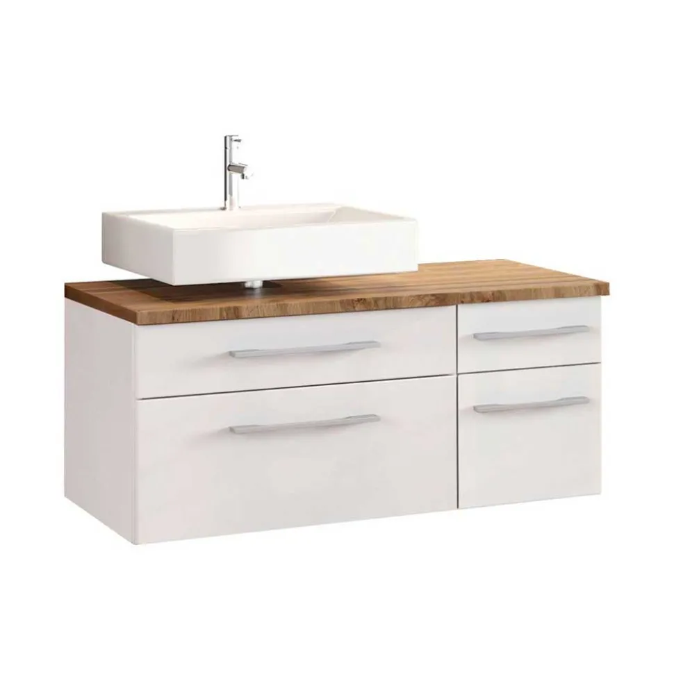 - Attraktives Badmöbel Set in Weiß und Wildeichefarben