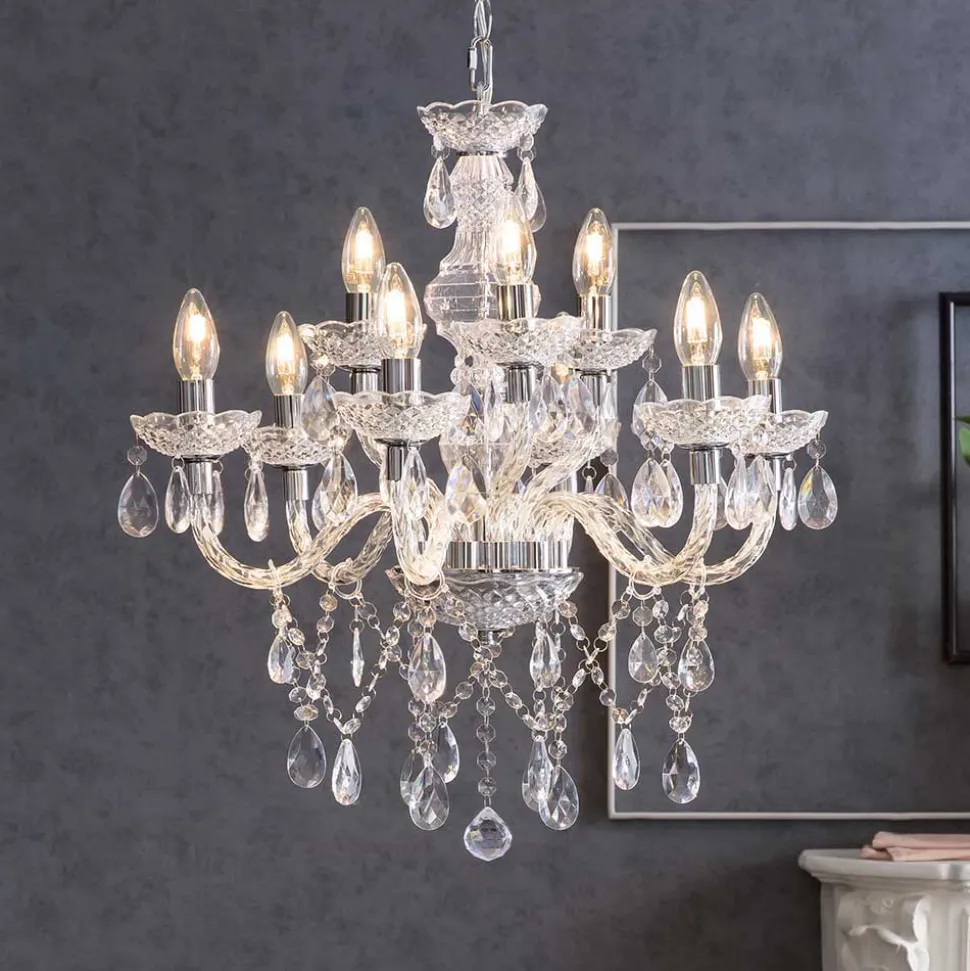 - Eleganter Kronleuchter in Transparent und Silberfarben 9-flammig