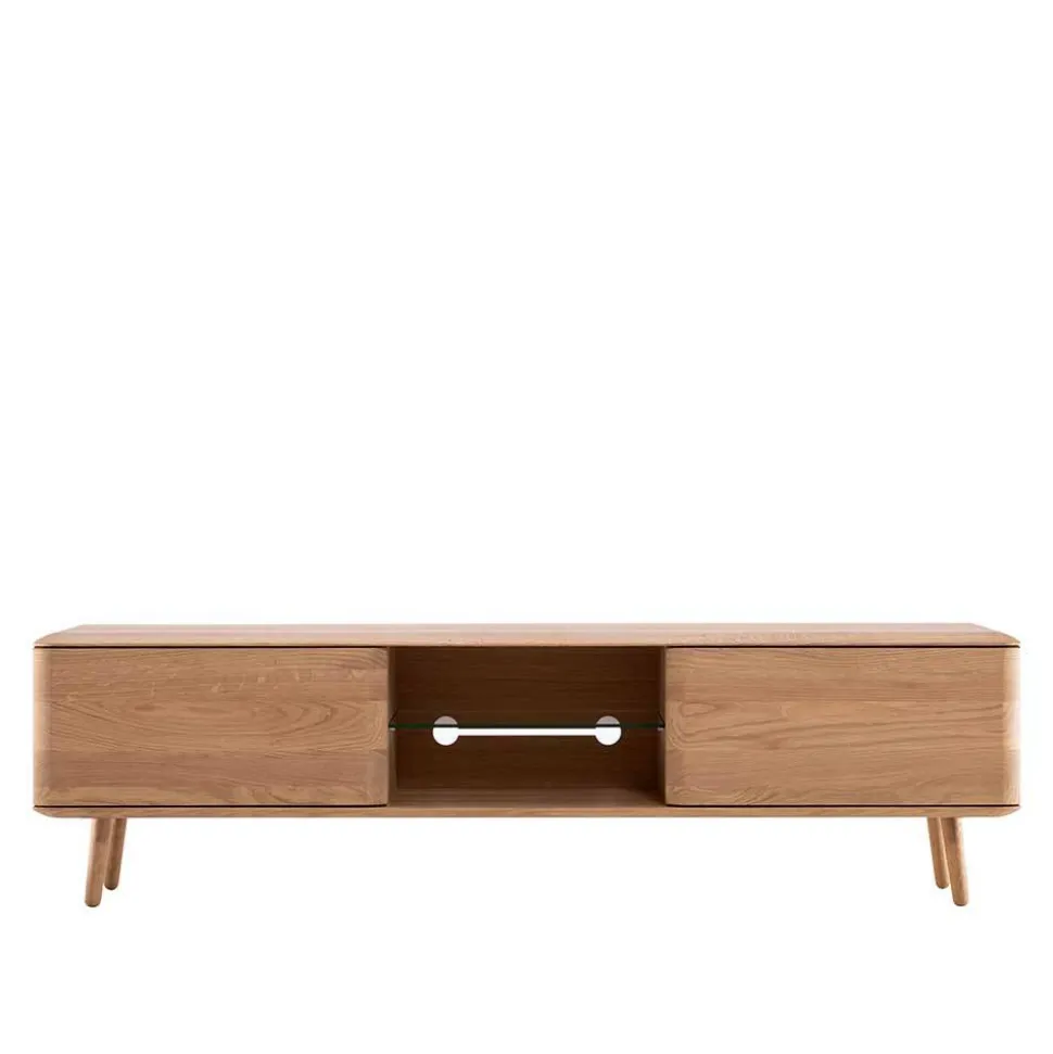 - Schlichtes TV Lowboard in Eiche Bianco