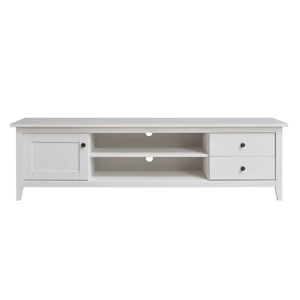 Gefertigt aus massivem Kiefernholz, verspricht dieses TV-Lowboard Langlebigkeit und Stabilität. Kiefernholz ist bekannt für seine warme, goldgelbe Farbe und die charakteristische Maserung, die jedem Möbelstück eine individuelle Note verleiht. Darüber hinaus ist es ein besonders widerstandsfähiges Material, das zugleich leicht und elastisch ist.