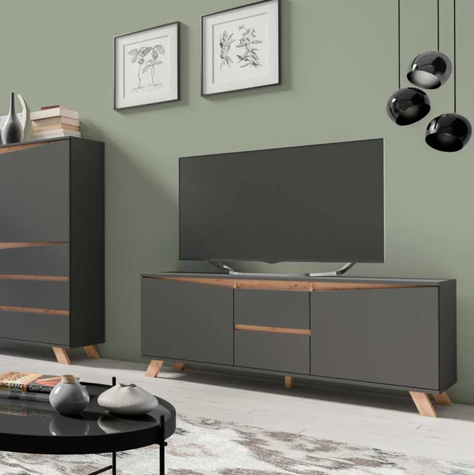 - Tolles TV-Board in Anthrazit und Wildeichefarben