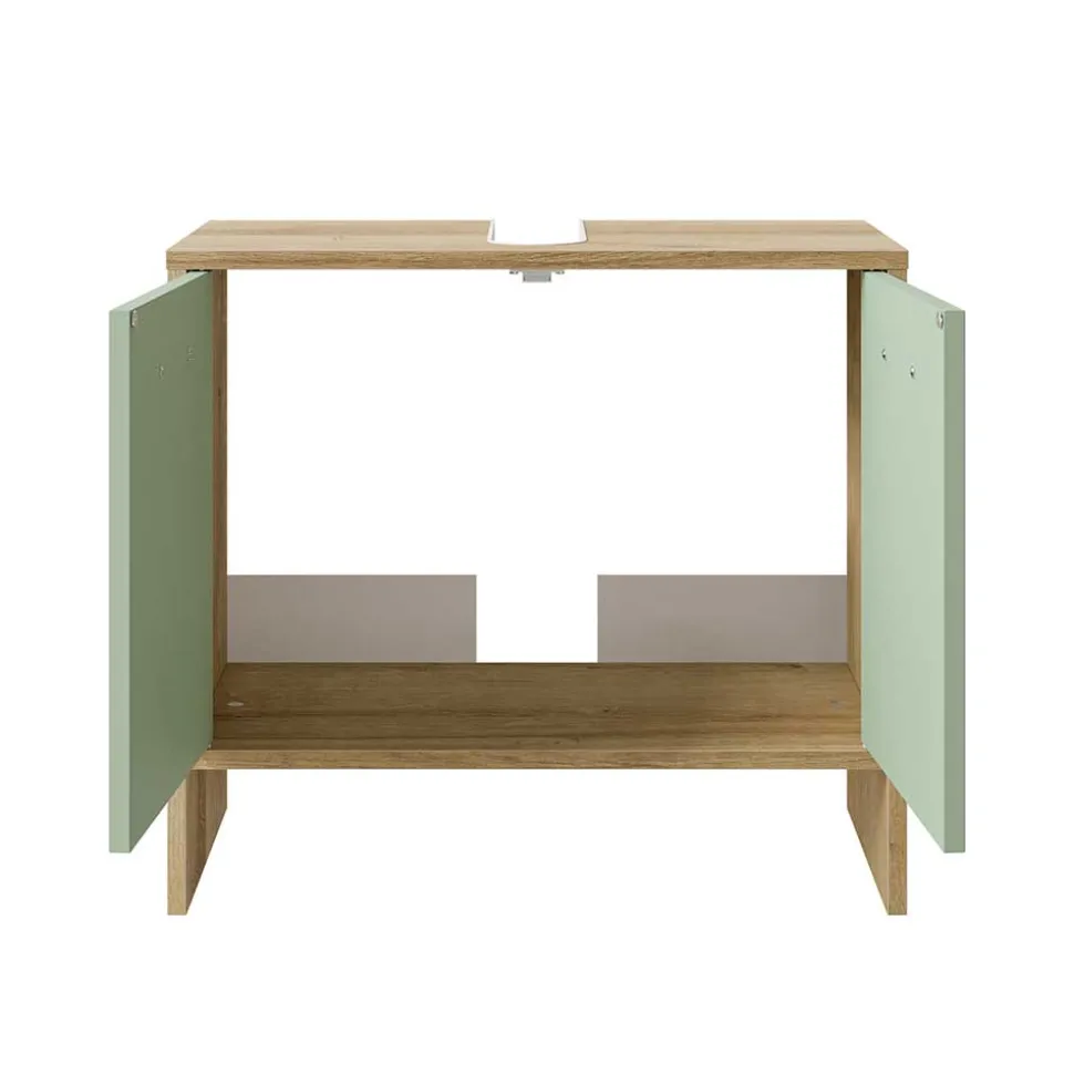 - Idealer Waschbeckenunterschrank in Graugrün und Eichefarben