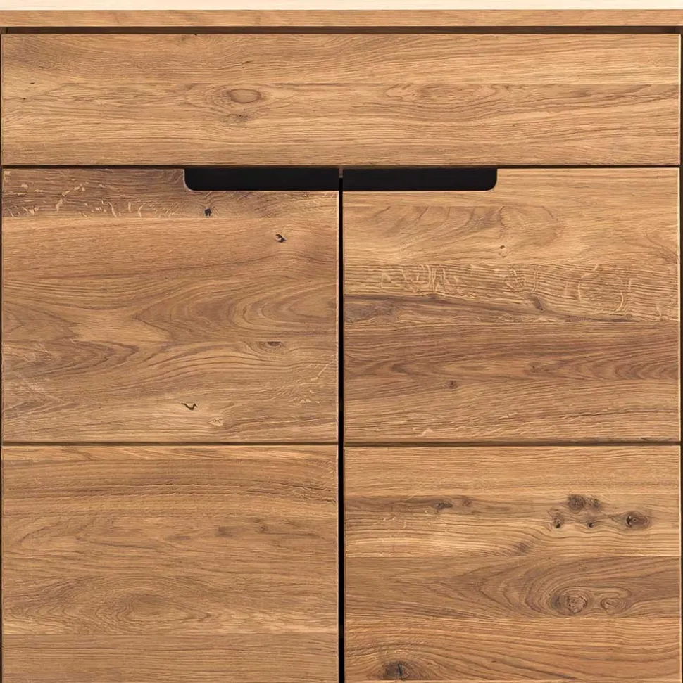 - Front aus massivem Eichenholz (durchgehende Lamelle), Korpus aus Holzwerkstoff gefertigt