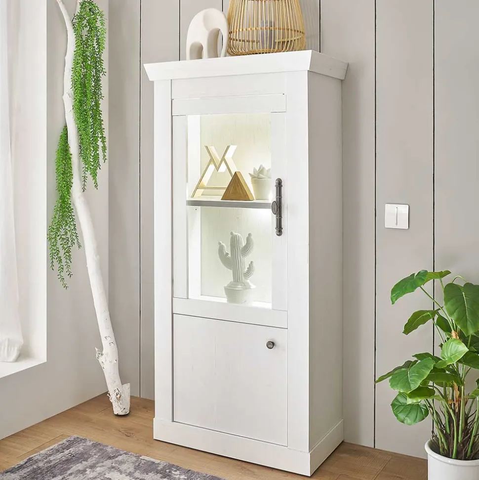 - Dezente Vitrine in Holzoptik Pinie Weiß