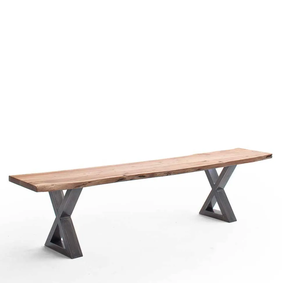 - Die Sitzbank präsentiert sich in Akazie Natur- und Altsilberfarben im Industry Stil