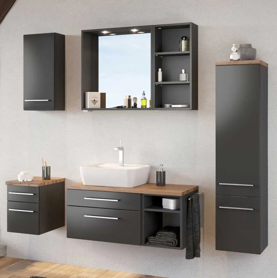 - Klasse Badmöbel Set in dunkel Grau und Wildeichefarben