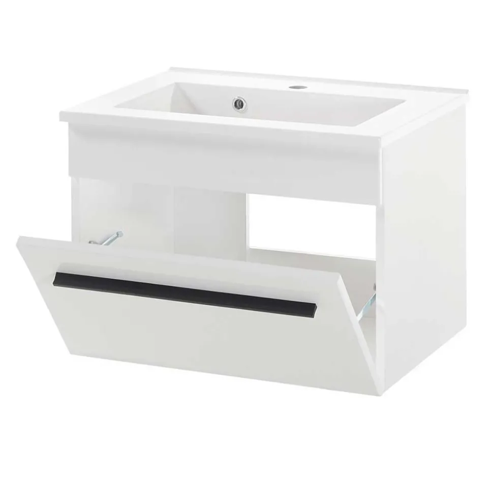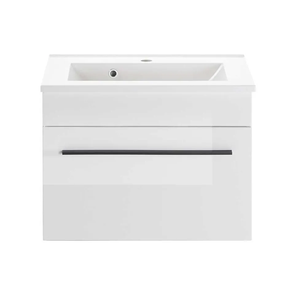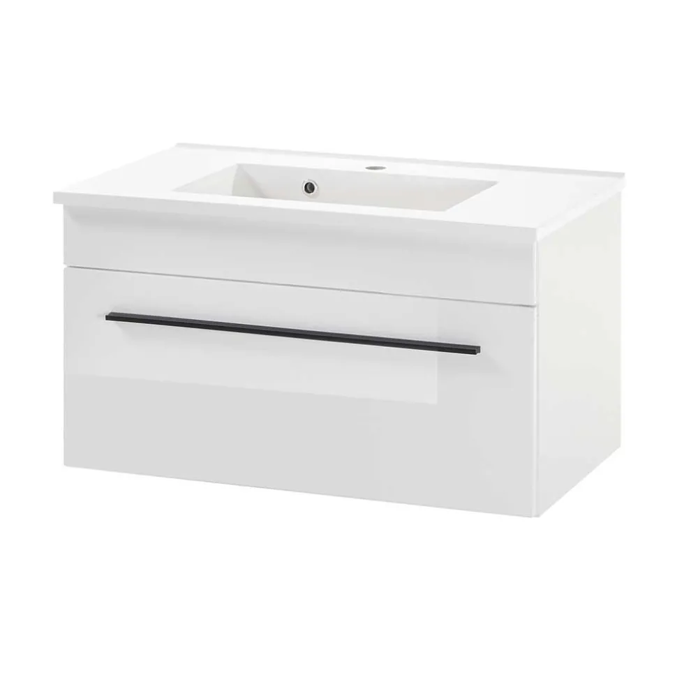 - Front hochglänzend weiß foliert und tiefgezogen, Korpus melaminbeschichtet